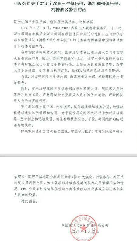 当今,受到全中国篮球珍贵者温雅的CBA通例赛正在火热进行中。而在近日的一场焦点战,辽宁对阵浙江队的比赛中,辽宁队主西席杨鸣在比赛中对着浙江球迷作念了一个4:0的手势。而这个手势也引起了浙江球迷的极大气氛,如今后续来了,CBA官方连发三张书面告戒函。